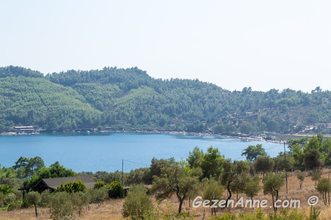 Adeta bir havuzdaymışçasına Akbük'te yüzdük. Bir tarafta taş ve ormanlarla kaplı koca bir dağ, diğer tarafta muhteşem bir çam ormanı. Öylesine huzurluydu ki insanın sudan çıkası gelmiyordu...