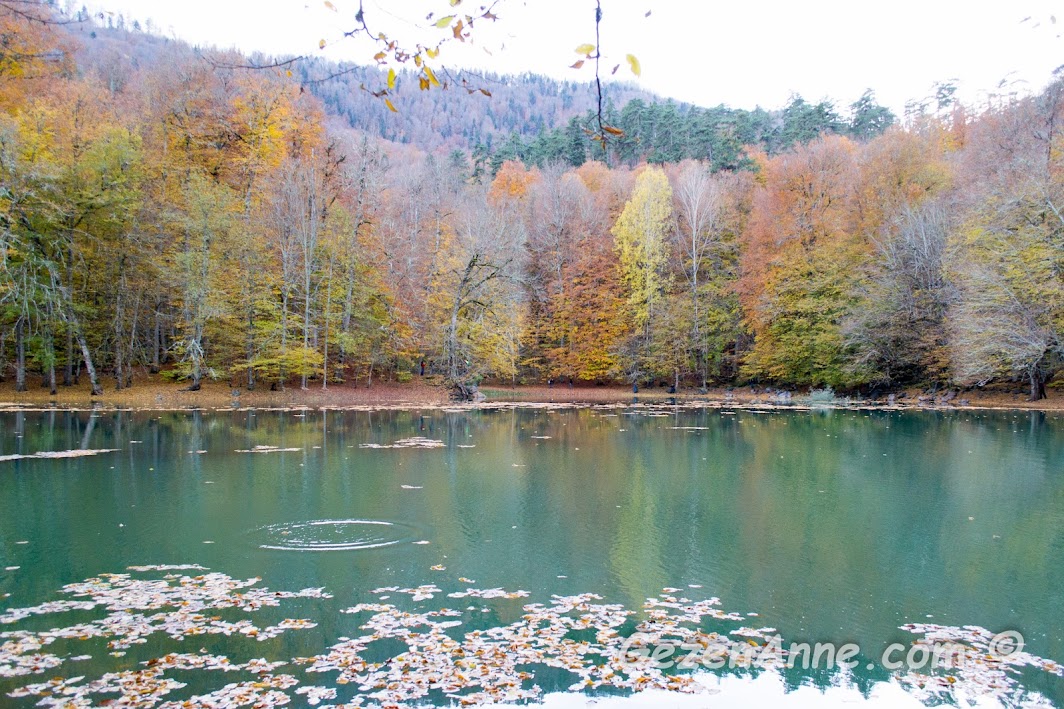 Otelden ayrılıp, Gazelle Otel'e çok yakın, Bolu'daki en şirin göllerden Gölcük Gölü'ne doğru yola koyulduk. Bir dağın tepesindeki göle ulaşmak için düzgün yoldan kıvrıla kıvrıla 7 km boyunca gittik ve tepeye tırmandık. Yol boyunca önce sarı yapraklı ağaçlar eşlik etti bize, zirveye doğru yeşil çamlar geçti yerlerine. En sonunda Gölcük Tabiat Parkı'na ulaştık.Gölcük Gölü